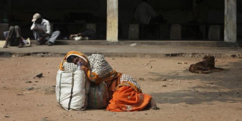 . Seorang keluarga dari pesakit flu babi beristirahat di komplek rumah sakit Gandhi di Hyderabad, India