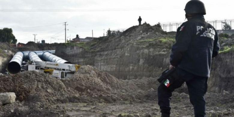 AFP Photo via BBC - Hujung terowong  yang digunakan Joaquin Guzman lari,berada di lokasi pembangunan yang terletak di luar dinding penjara.